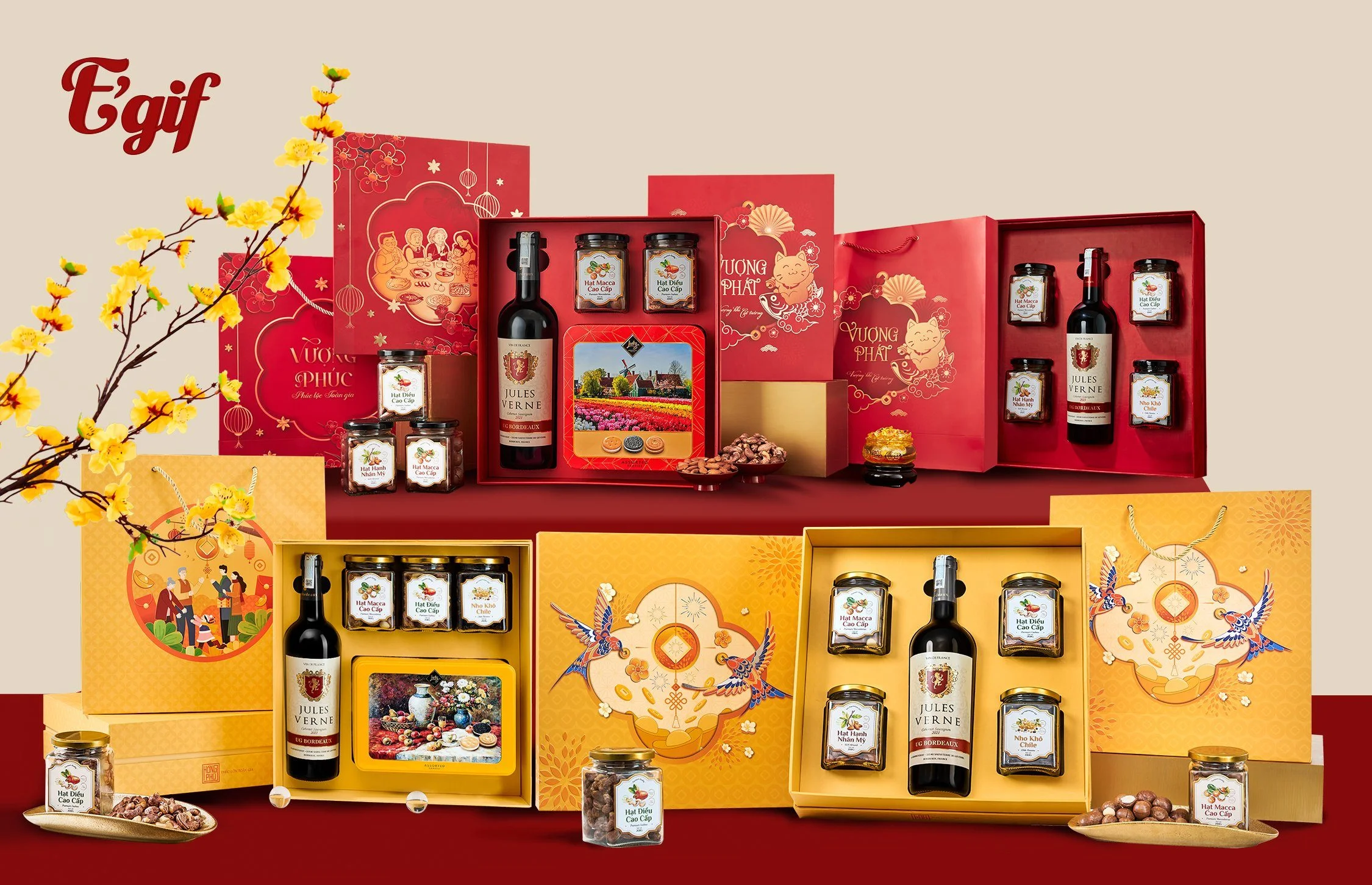 Những hộp quà bắt mắt, sang trọng là thay người tặng thể hiện lòng thành, lời chúc Tết năm mới tốt đẹp đến người nhận. Thiết kế hộp quà tỉ mỉ từng chi tiết, chất liệu hộp “xịn” được gia công cẩn thận, gói ghém chỉn chu giúp tăng tính thẩm mỹ cho set quà Tết nâng cao giá trị, trở nên ấn tượng hơn trong mắt người nhận.