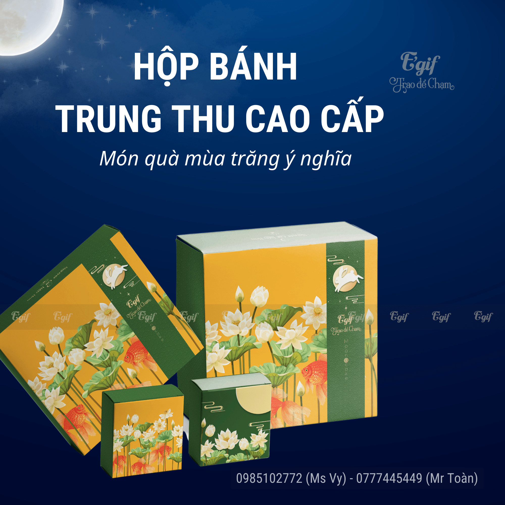 Đặc biệt, hộp bánh trung thu là một trong những cách để doanh nghiệp quảng bá thương hiệu một cách nhanh chóng và hiệu quả nhưng lại không tốn quá nhiều nguồn nhân lực lẫn tài lực.E’Gif luôn sẵn sàng hỗ trợ để bạn có thể lồng ghép các thông tin về thương hiệu lên vỏ hộp một cách thật tinh tế, để thương hiệu trở nên phổ biến và quen thuộc với khách hàng.