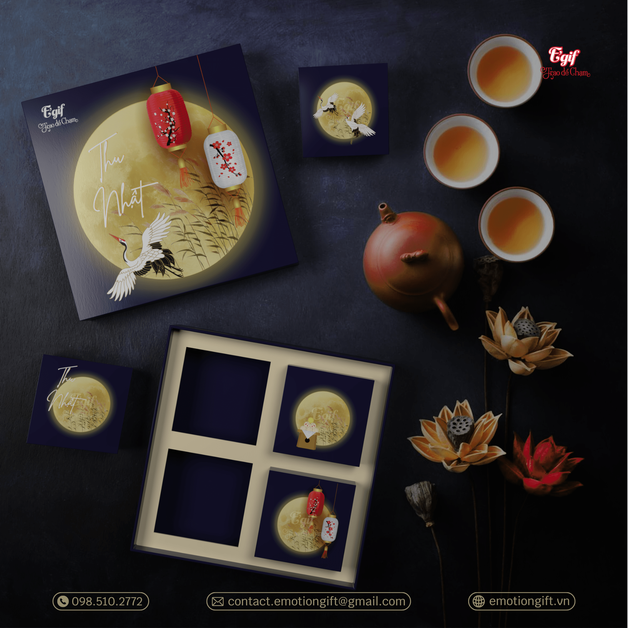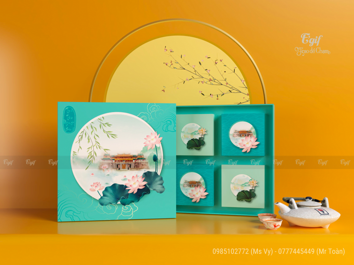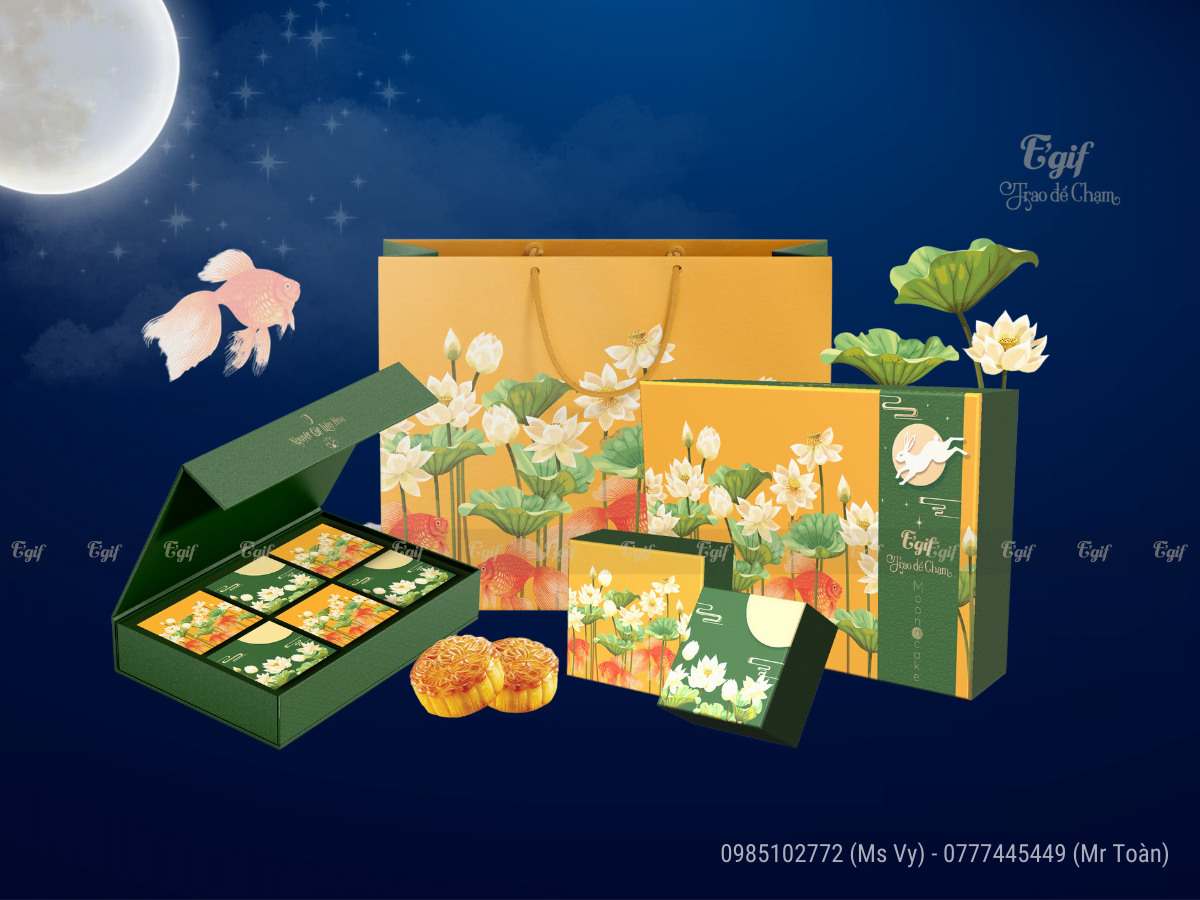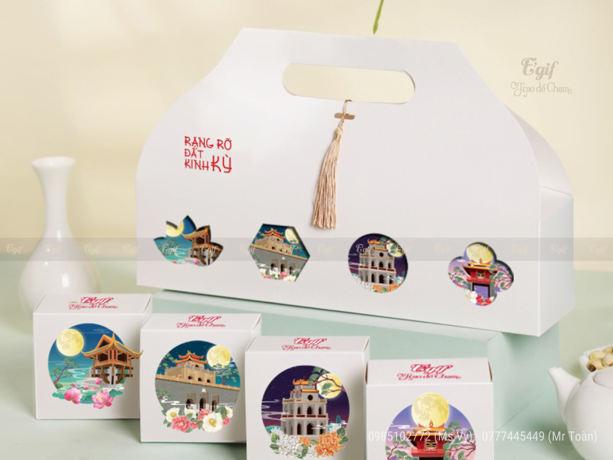Tại E’GIF, mỗi bộ vỏ hộp bánh Trung thu sẽ bao gồm: