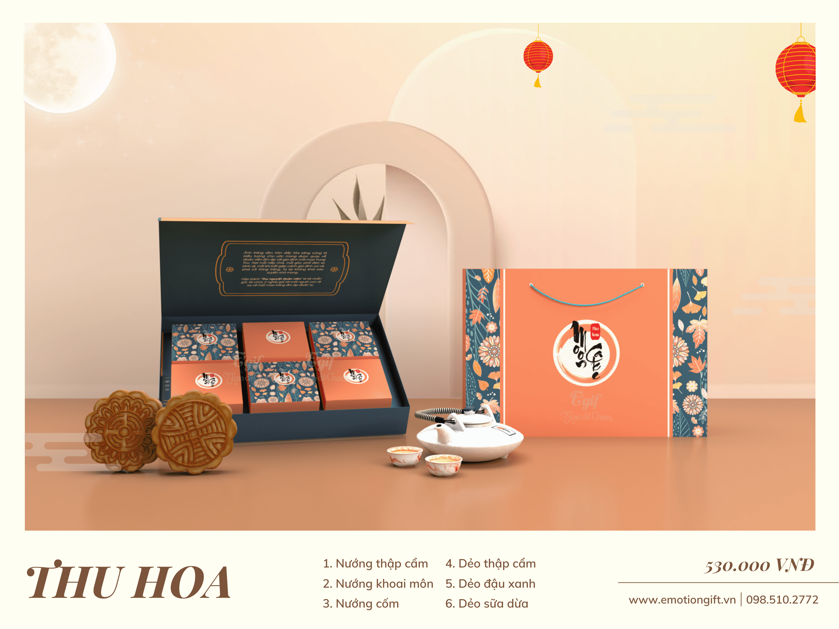 Thu là mùa tràn ngập yêu thương của đất trời và lòng người; hoa lá khoe sắc khoe hương, con người cũng muốn giao hòa chung đôi chung lứa. Lấy cảm hứng từ mùa thu của xứ sở Hàn Quốc xinh đẹp, hộp bánh Thu Hoa với phong cách trẻ trung, hiện đại hướng tới khách hàng là các bạn trẻ như món quà để gửi trao yêu thương khi mùa thu về